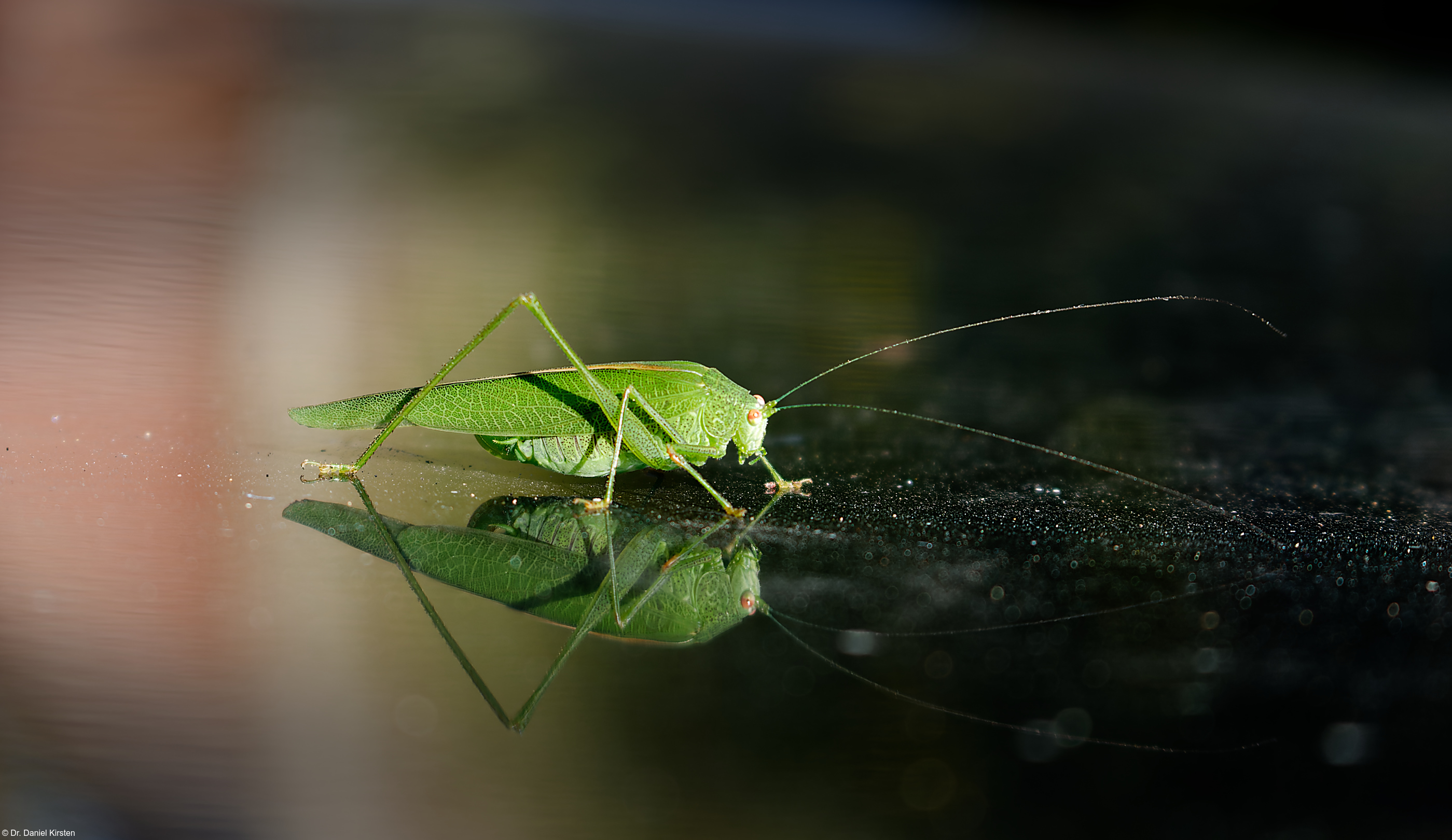 Heuschrecke auf der Mortorhaube, Oktober 2025.