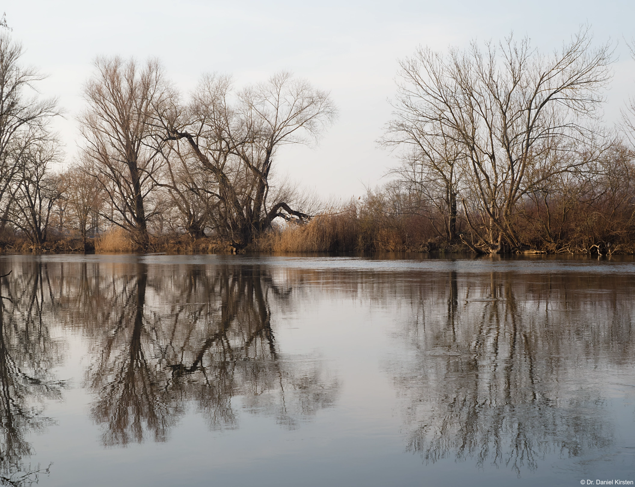 Bäume an der Saale in Bad Dürrenberg im Februar 2025, Carl Zeiss Jena Tessar 2.8/50 red T 12 blade, Vollformat.