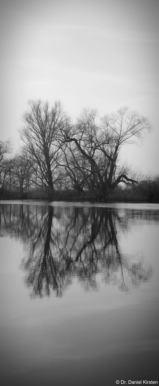Bäume an der Saale in Bad Dürrenberg im Februar 2025, Carl Zeiss Jena Tessar 2.8/50 red T 12 blade, Vollformat.